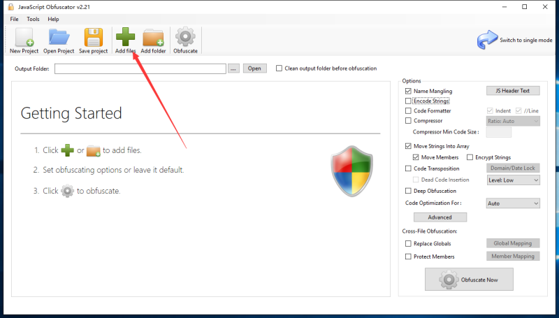 2.点击add files按钮,选择需要混淆的JS文件