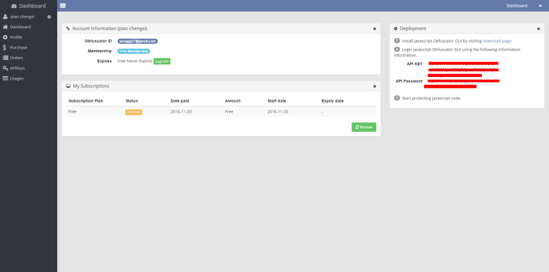6.注册成功后获取API KEY 和 password